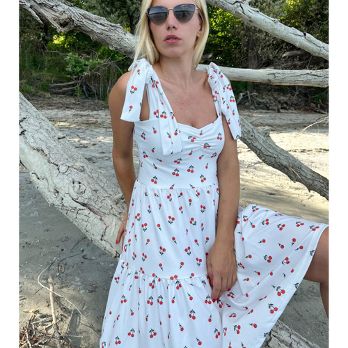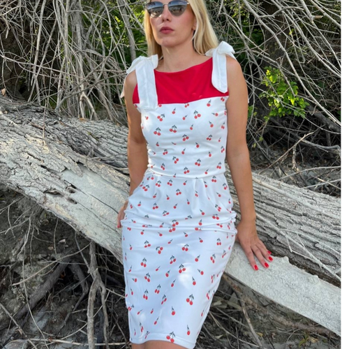 Haljina sa gumom u struku i ukrasnim trakama na vezivanje