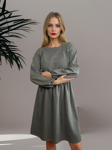 Maslinasta duks haljina sa gumom u struku