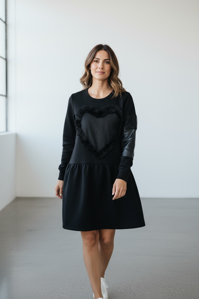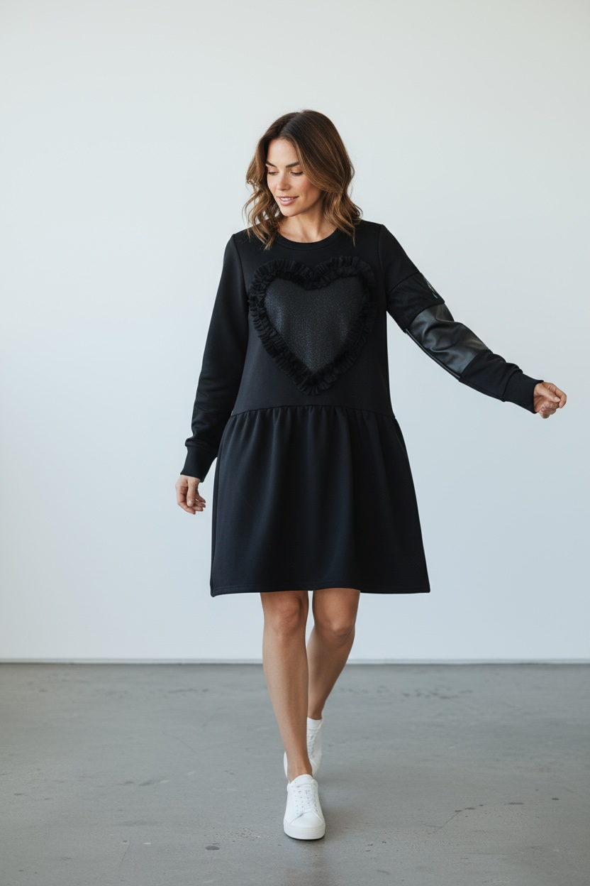 Crna haljina sa kožnim detaljima